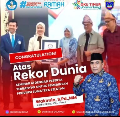 Sriwijayatim id OKU Timur – Kabupaten Ogan Komering Ulu (OKU) Timur mencatatkan namanya dalam event Webinar Internasional “Guru Indonesia Belajar AI” yang digelar untuk memperingati Hari Literasi Internasional, Sabtu (20/9/2025).